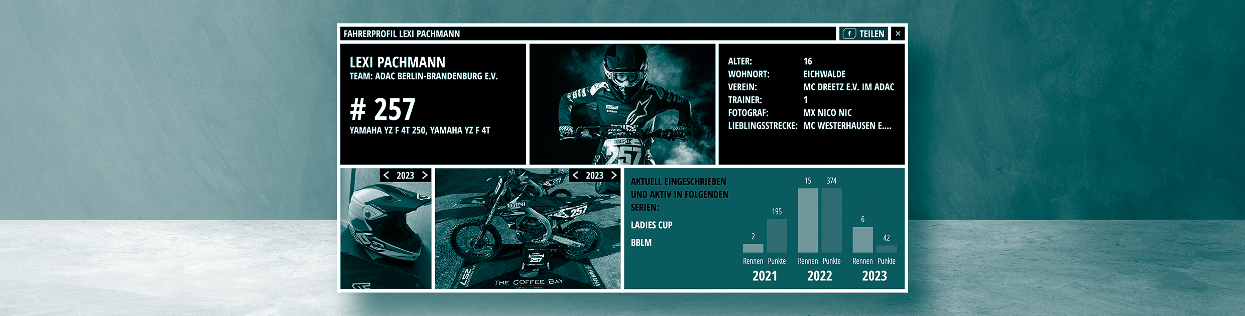 Ohne dich gäbe es keine spannenden Rennveranstaltungen. Deswegen kannst du dir bei vorstart ein kostenloses Fahrer-Profil erstellen und veröffentlichen. Dies konnte durch die Unterstützung von www.Maciag-Offroad.de dem Onlineshop für Motocross, Enduro & Mountainbike ermöglicht werden. Freunde, Fans und Sponsoren können deinen Namen in den Starterlisten anklicken und dein Profil mit allen Aktivitäten anschauen und sind somit immer informiert. Mit deinem künftigen Fahrerprofil punktest du in der gesamten Saison bei deinen Sponsoren. In unserer kleinen Szene ist es wichtig, Unterstützer für sich zu begeistern und das eigene Budget etwas aufzubessern.